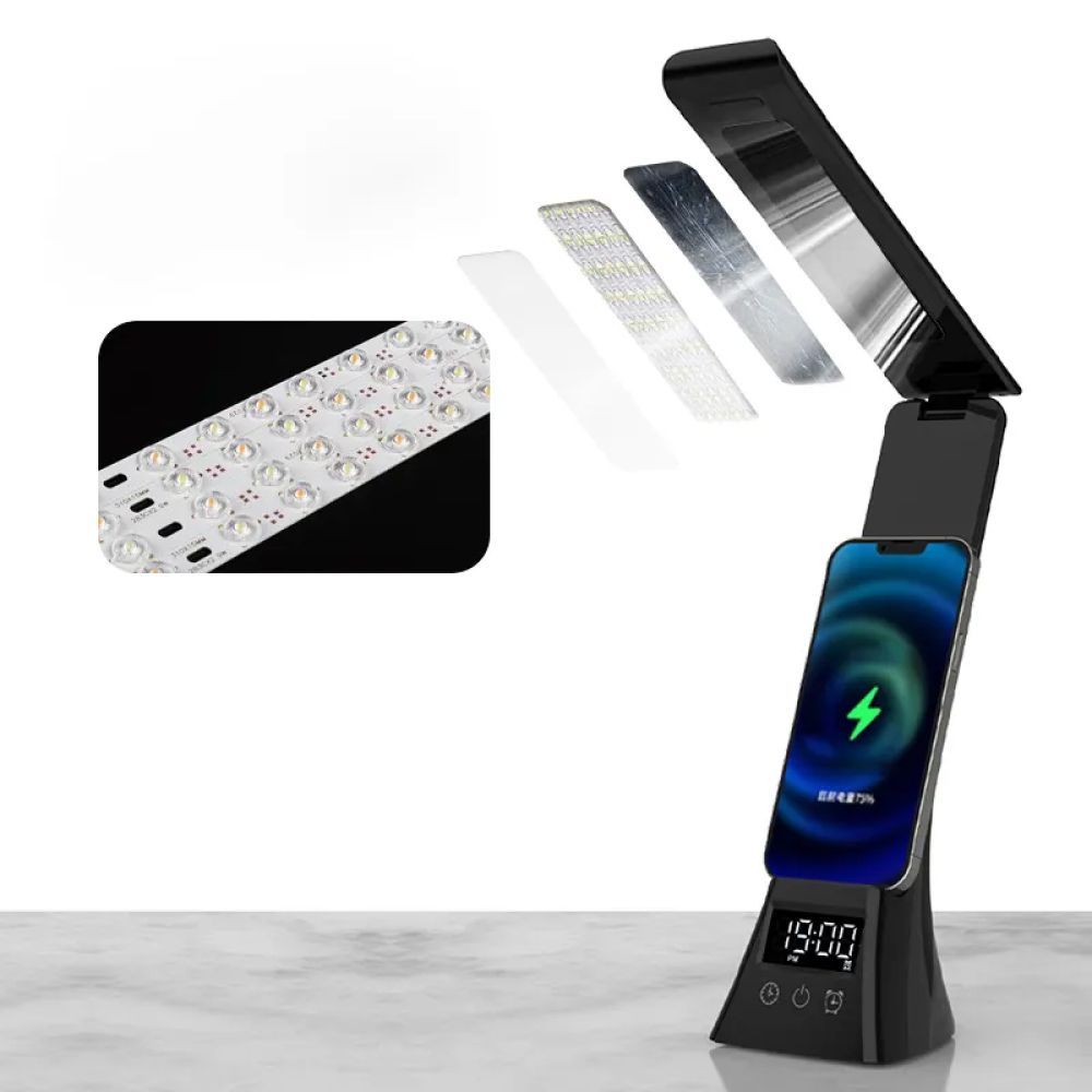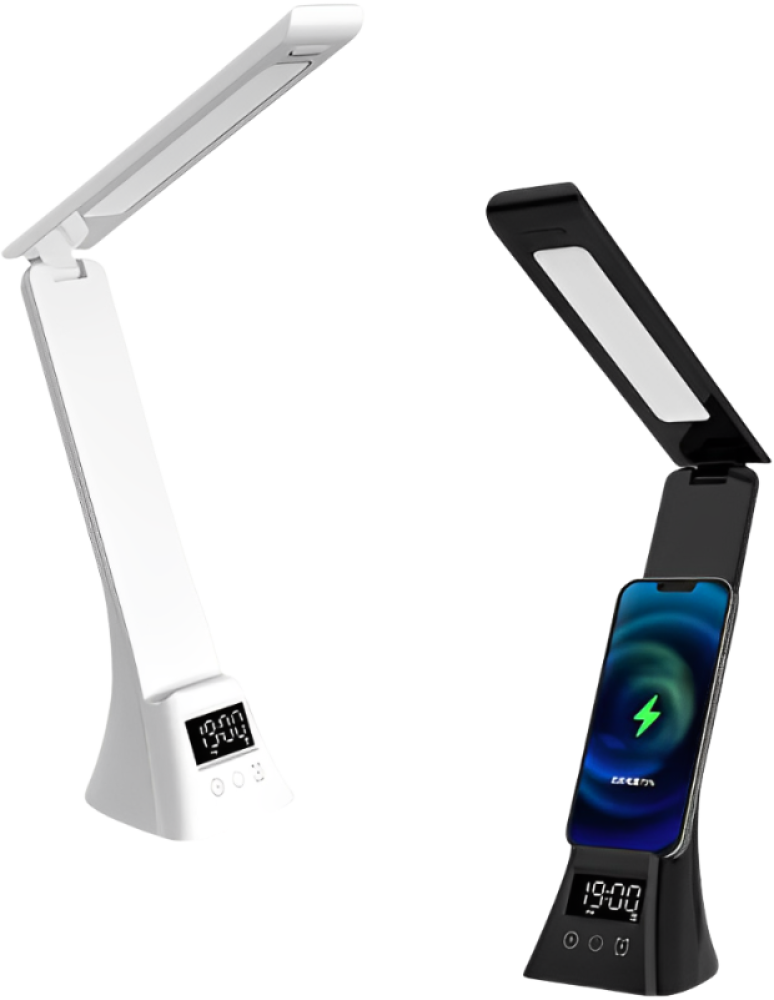 شاحن سمارت بتصميم أبجورة فندقية ذكية يجمع بين الإضاءة الأنيقة، الشحن اللاسلكي، المنبه، وإمكانية التحكم عبر التطبيق لراحة كاملة وتجربة تقنية متكاملة.