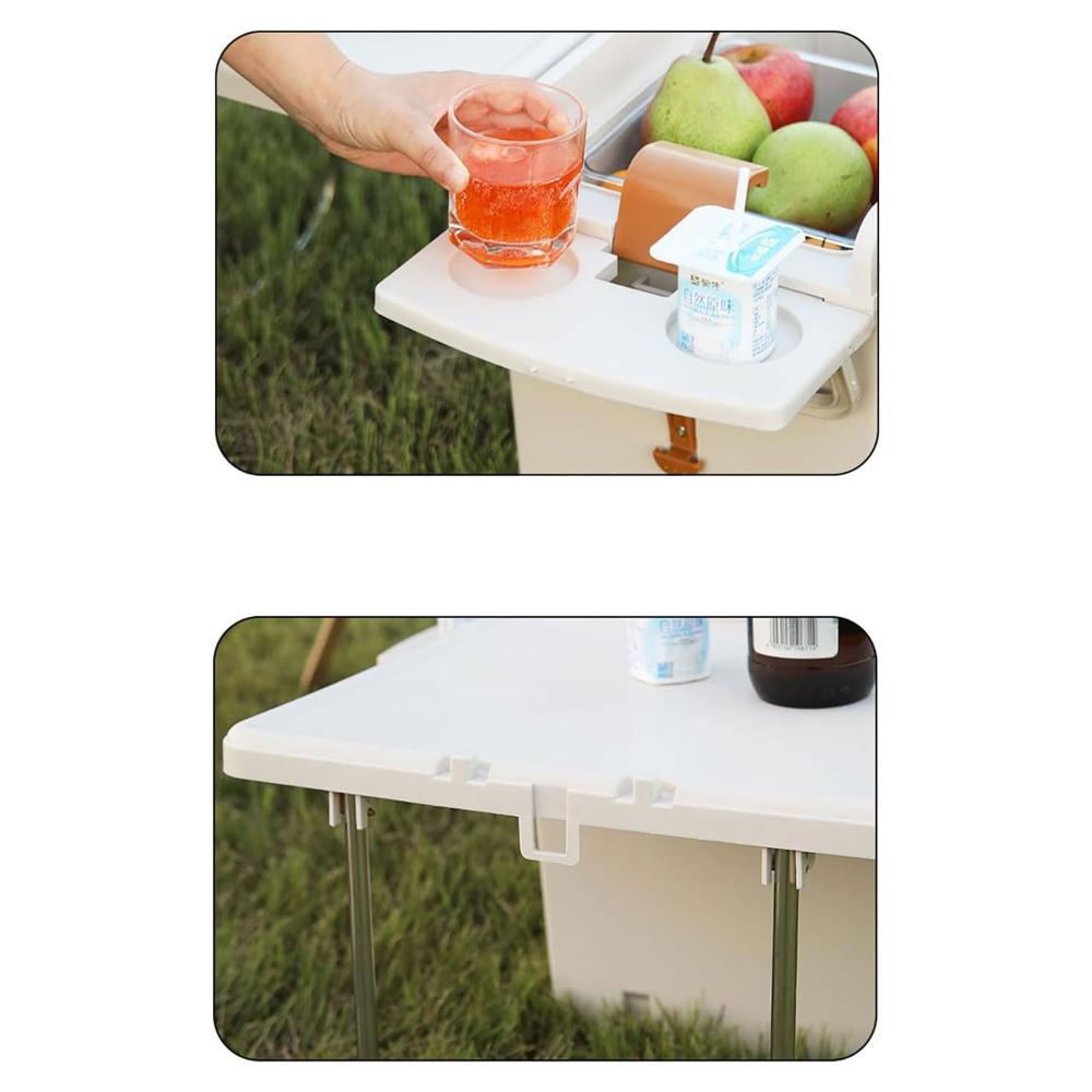 طاولة تخييم مع ثلاجة تجمع بين وظيفة التبريد وحلول التخزين مع سطح طاولة عملي مما يجعلها مثالية للرحلات والتخييم حيث تحافظ على طعامك طازجًا مع مساحة مناسبة لتحضير وتناول الوجبات في الهواء الطلق.