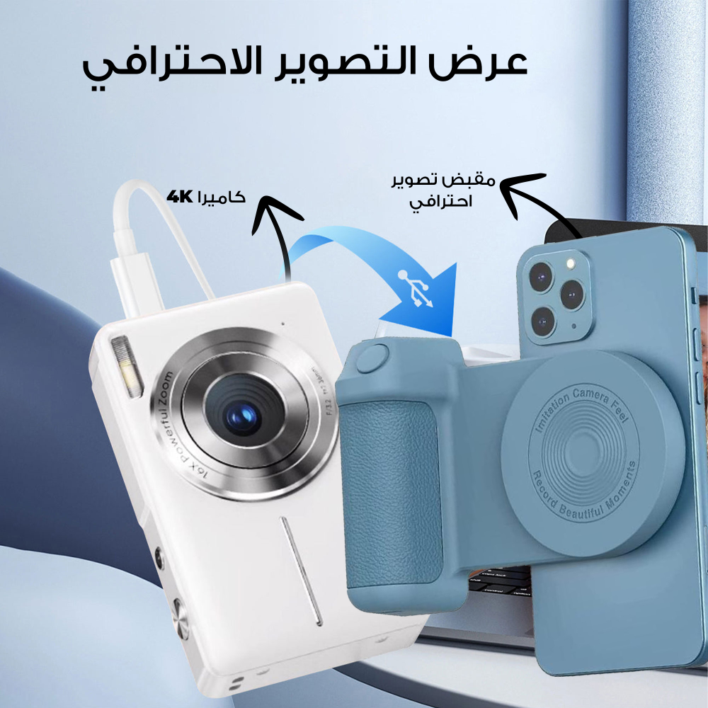 كاميرا 4k + مقبض تصوير احترافي